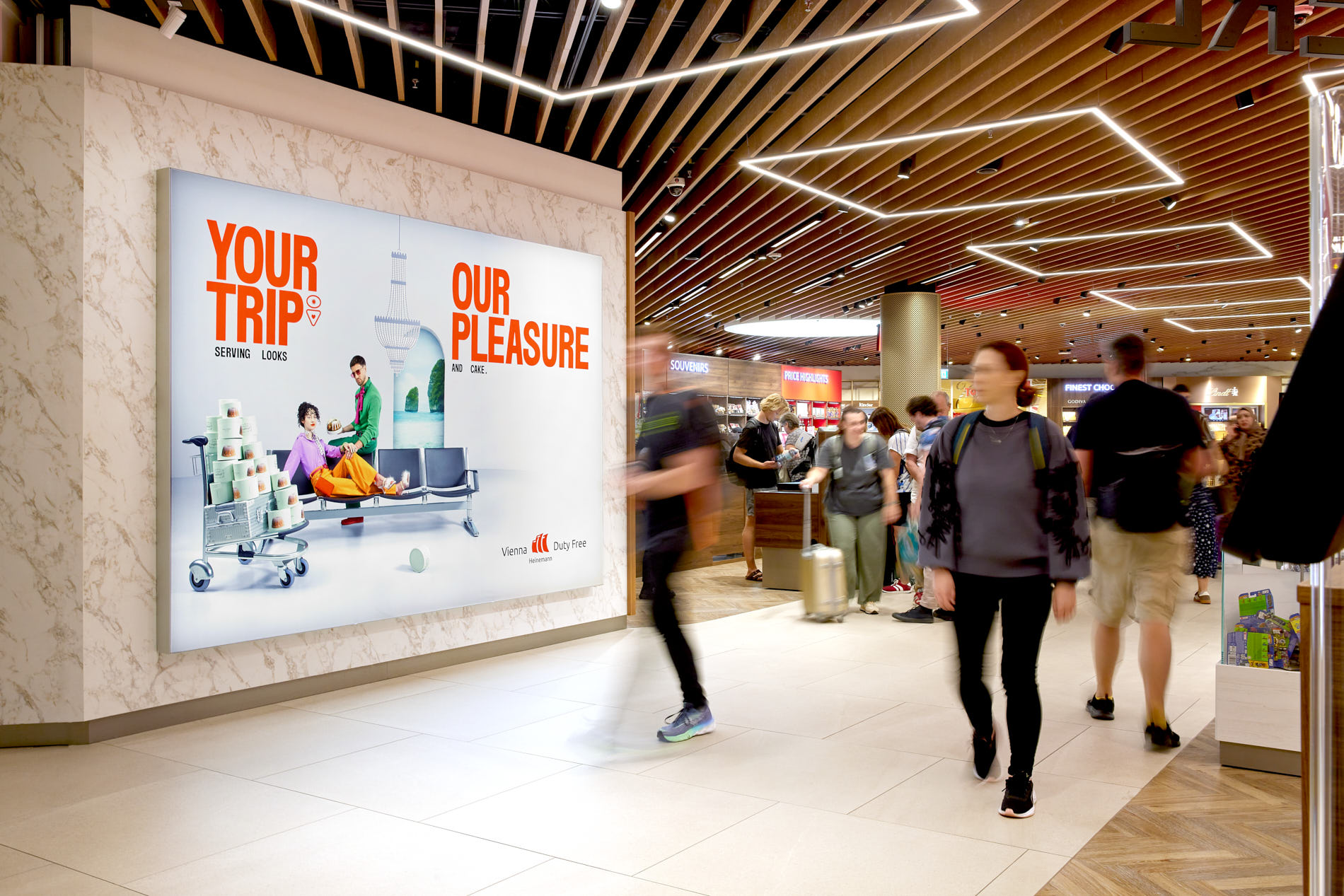 Resultat ist eine visuelle Erzählung über drei Ebenen, die dem Standort Wien und der Marke Heinemann Duty Free eine eigene Identität verleiht und auf die Situation der Abreisenden eingeht.